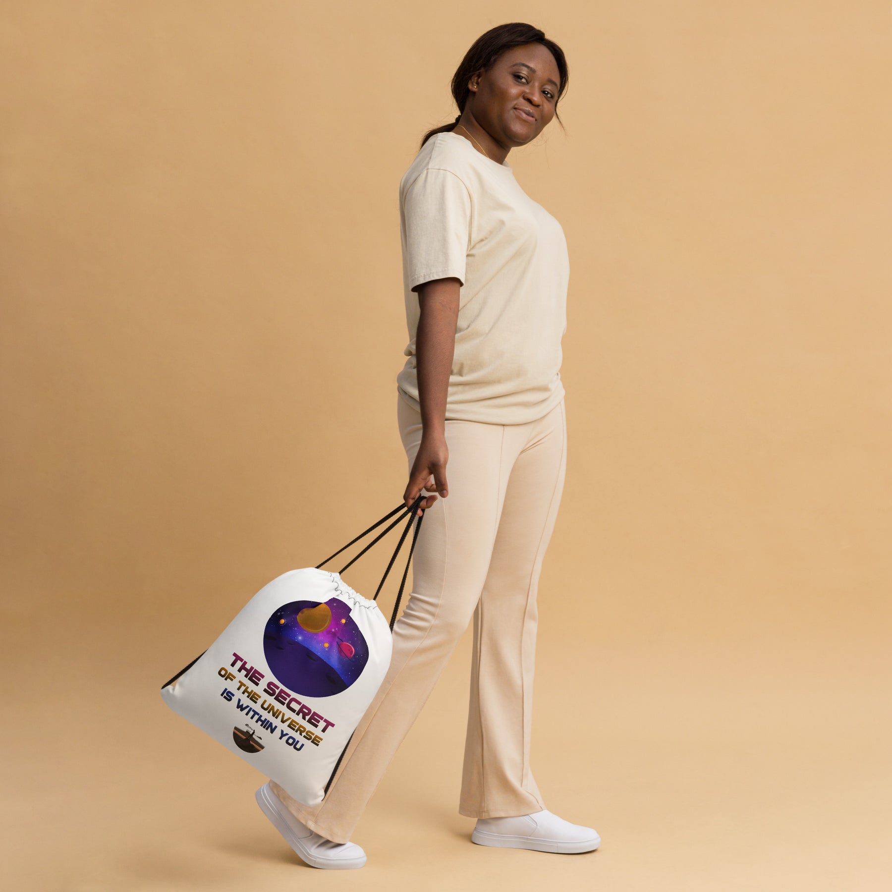 The secret of the universe is within you drawstring bag